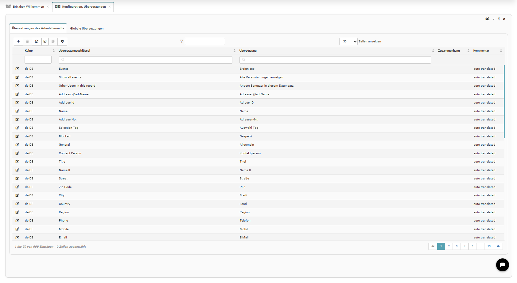Dank automatischer Übersetzung sind Ihre brixxbox-Anwendungen direkt multilingual! Natürlich steht aber auch einem manuellen Feinschliff der Übersetzungen nichts im Weg.